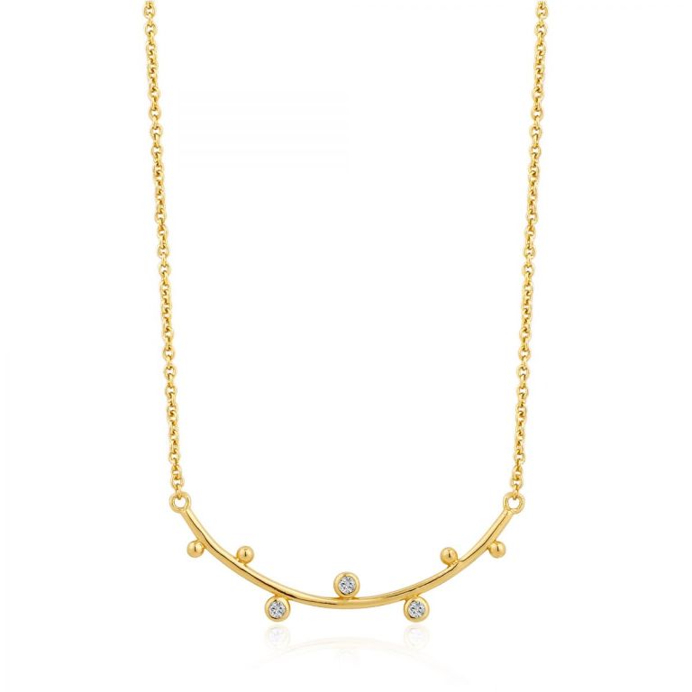 Ania Hale offers jewelry that’s pretty, trendy and very affordable. This Shimmer Solid Bar Stud Necklace is made of gold plated sterling silver, set with small cubic zirconia stones. It’s also available with rhodium plate.