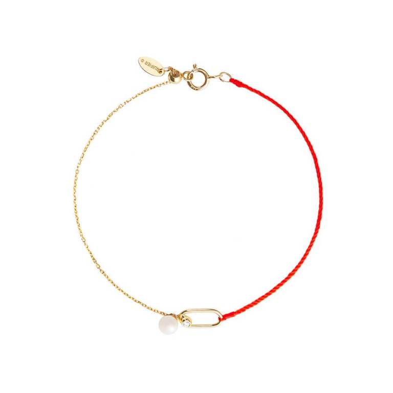 Yes, gold mixed with fabric and made into bracelets is a thing (hello, Cartier). Here, by Ruifier … “Feminine and tactile, the RUIFIER Astra Moonlight Bracelet features a sophisticated pearl descending from 18ct yellow gold, whilst a dainty diamond maximises the natural shine of the pearl. A unique blend of cord and chain that promises a dose of everyday luxury.”