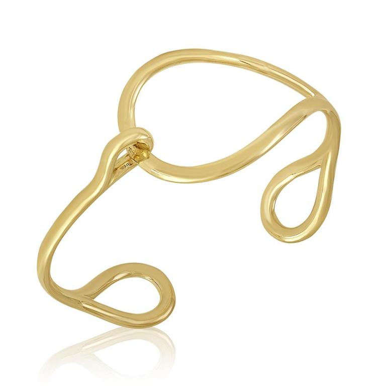 This bracelet, classic with a (literal) twist, is designed by Julie Lamb. Or as she describes it, “This super sexy cuff boasts sleek lines and bares it all at the flick of your wrist. Warm high polished 18K yellow gold can be turned all the way up or dressed down. Two burnished diamonds highlight the back view- just for you.”