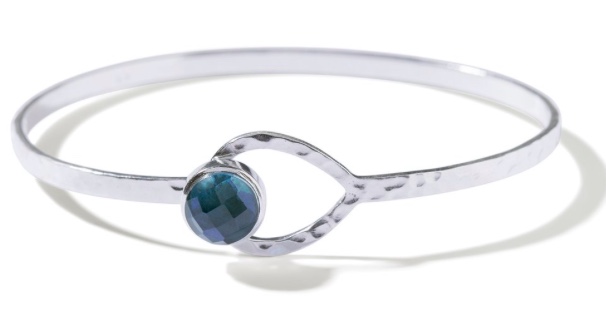 From Capetown, South Africa comes Black Betty Jewellery. Their Hooked Luna Bangle is made in sterling silver and features your choice of a London blue topaz or a black spinel in the centre.