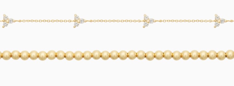 Mejuri’s marketing proposition is that they offer gold jewellery at more affordable prices. Here, a set of two bracelets. They explain, “Whoever said, ‘Take one thing off before leaving the house’ was very wrong. $35.00 saving when bought as a set.