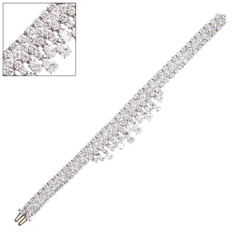 This CZ bracelet by Fantasia by Deserio is a great special occasion piece. Their website is light on details as to what metal is used on this piece, but elsewhere on the site they note, “All Fantasia by DeSerio is made of precious metals, gold, silver and platinum. They are cast in the same manner as fine jewelry, and polished by our expert professional jewelry polishers. All 14k white gold and 18k white gold pieces are plated with a durable and bright rhodium layer while sterling silver-based jewelry is plated with palladium or 22kt yellow gold. For the look of fine, platinum jewelry, the palladium is additionally plated with rhodium over the top of a 22k white gold base. Our electroplate techniques add extra metal to the prongs, strengthening them, so that the loss of stones will not occur. All jewelry is then polished and white glove inspected to ensure the highest quality every time.”