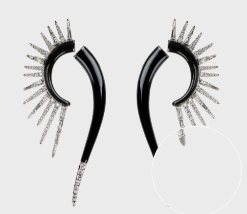 Greek designer Nikos Koulis is a man of few words – this is the description of these earrings taken from his website: white gold earrings with white diamonds and black enamel – and no prices. (Seems to be the theme this week…)