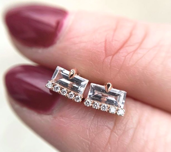 As a Canadian, I like highlighting home-grown talent. Shawna Tabacznik works in Toronto and does gorgeous fine jewellery. These earrings are made with baguette white sapphires set in 14k rose gold and accented with small diamonds. Her website is currently being updated but you can also find her at the link above on Instagram.