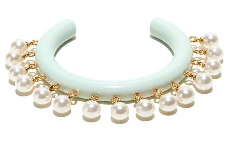 If you like charm bracelets no doubt you’ll like this bangle by Lele Sadoughi. It has the same jangly effect given the acrylic pearls that dangle off the acetate bracelet.