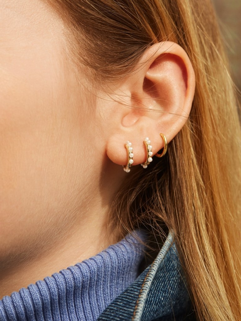 Baublebar is known for their cheap and cheerful costume jewelry. Here they are venturing into demi-fine jewellery, with these pretty and delicate gold plated sterling silver hoop earrings set with glass pearls.