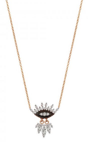 If you like your jewelry talismanic and a little out of the ordinary, Kismet by Milka is for you. This 10th Eye Necklace is made with 18k rose gold, set with white and what looks like black diamonds. Can’t be sure because the description just says “diamonds”… they are a girl’s best friend, as legend has it.