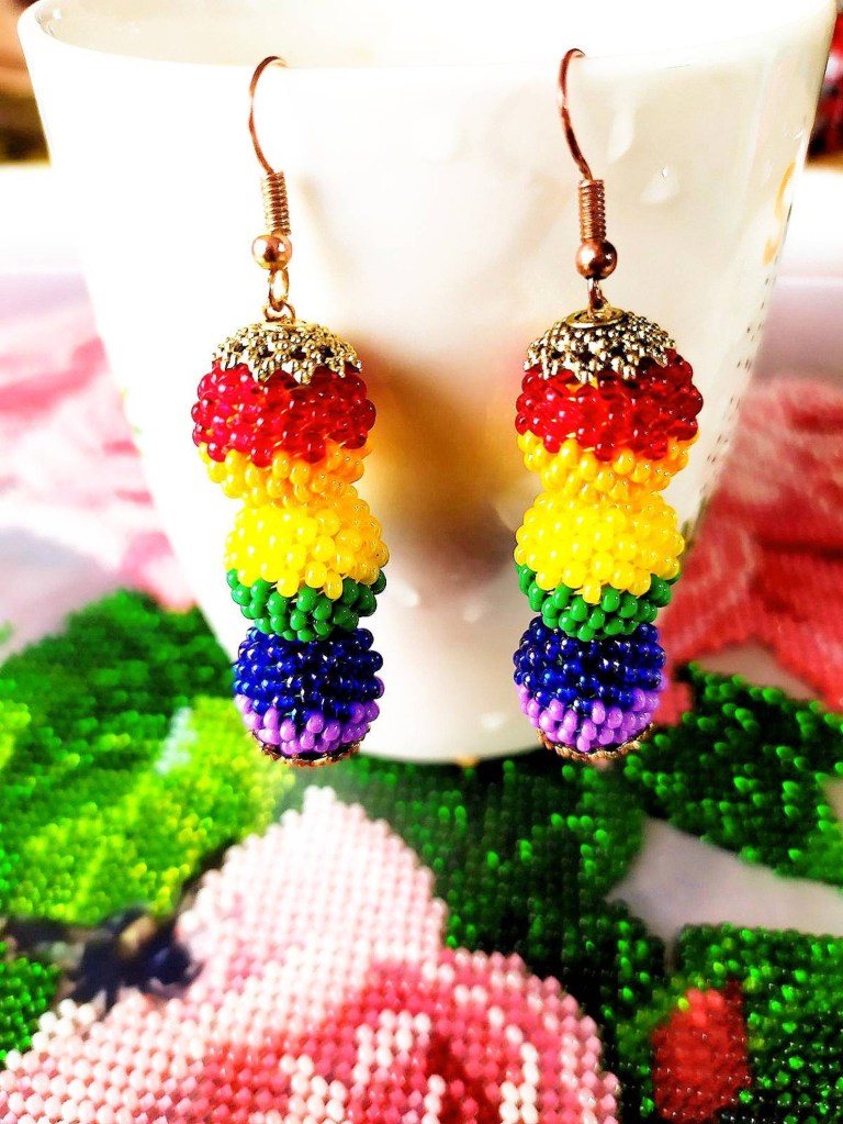 These beaded earrings are from Etsy seller Jewelry Gifts Mykhailo , and show the rainbow Pride colours. These are currently on sale for USD$19.50.