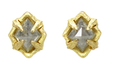 Amanda Hagerman describes the diamonds used in these earrings as “rustic.” The grey stones are kite shaped, and set in a custom 18k yellow gold setting designed especially for these gems.