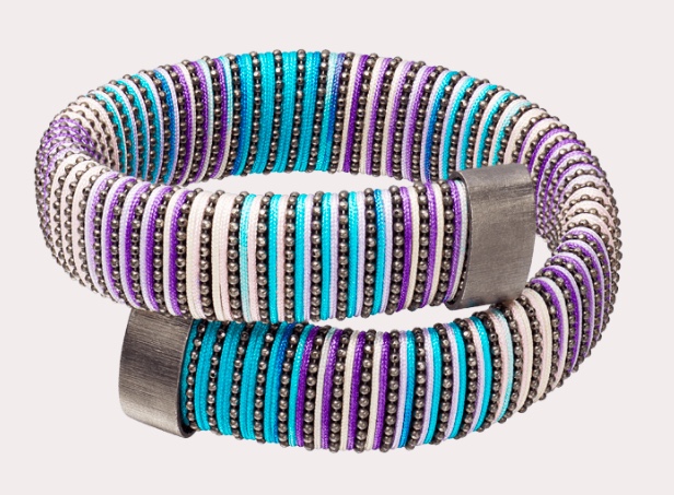 Carolina Bucci is perhaps best known for her bracelets combining gold or silver and threads, which tie onto the wrist. According to her website regarding this bracelet, “Borrowing from the childhood nickname of the designer, these pieces follow on from the success of our much loved Twister bracelets. A serpentine loop of black silver chain and seashell cotton thread, these CARO bracelets are designed to work alone or stacked together and to slip easily onto any size wrist.”