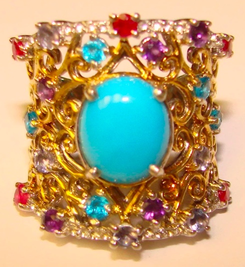This pretty sterling silver ring is set with glass stones – but you wouldn’t necessarily clock it as costume. This is from Ruby Lane seller Jewelpigs, and sells for USD$48.