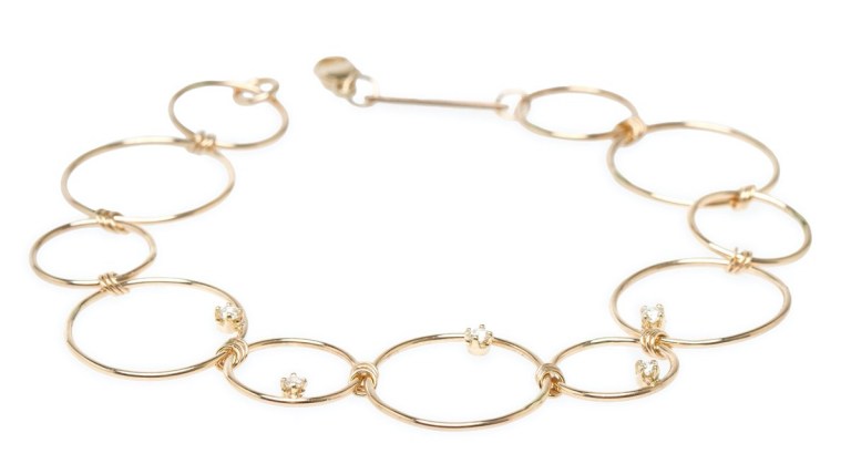Zoe Chicco offers contemporary jewelry for those who love delicate, dainty pieces. Here, a 14k yellow gold link bracelet featuring prong-set diamonds. Total diamond weight is .09. It is also available in white gold.