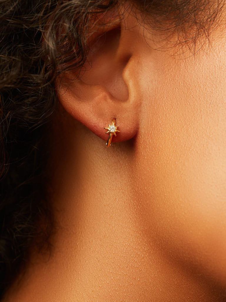 This pretty pair of hoops is by Ana Luisa. They are made of sterling silver plated with gold, and accented with tiny cubic zirconia stones. It’s a nice, elegant look for a modest USD$49.
