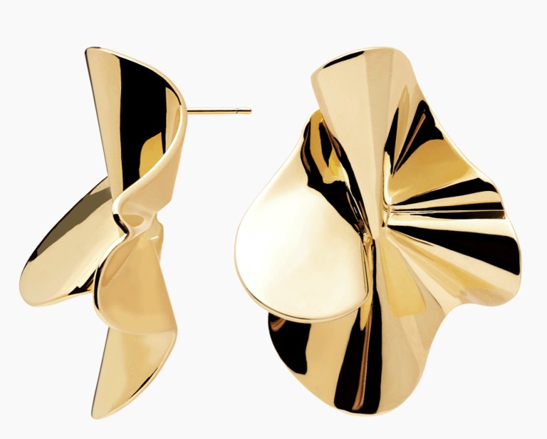 I love the 70s vibe of these earrings by PDPaola.These are gold plated base metal, so less expensive than solid gold. They note, “The wavy and exultant shapes of Nomad Gold earrings allude to the mystery of waving robes in the middle of vast geographies. These daring earrings, carefully polished and plated in 18k Gold, are made of eternal and unrestrained nights, filled with freedom and versatility.”