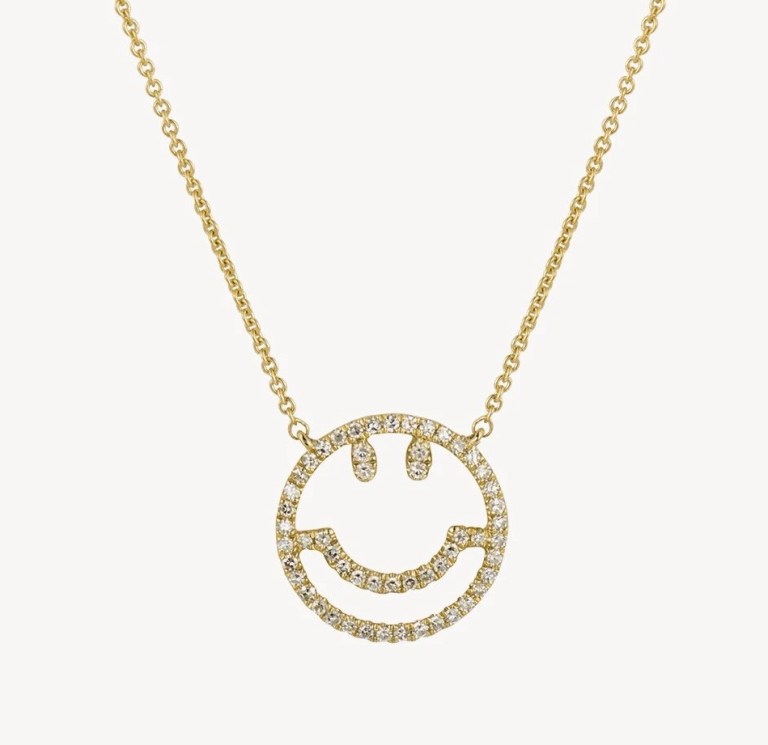I think it’s safe to say everyone could use a bit of cheering up these days. This necklace by Roxanne First plays off the popular “have a nice day” smiley face and is a fun piece with a positive message. (But if you find it too sunshiney, you do you…)