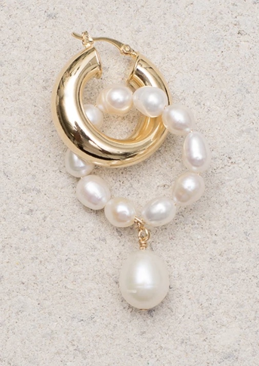 Yes, I’m on a bit of a pearl kick this week. This earring by Eliou is sold as a single. It’s made with a gold plated hoop and freshwater baroque pearls. This is priced at USD$82.