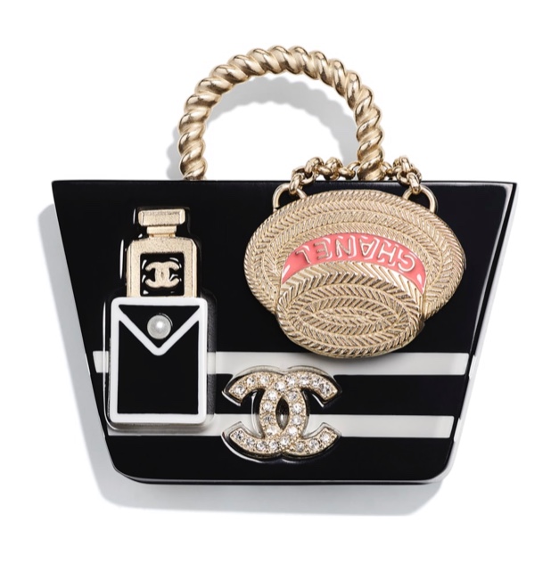 Have you been longing for a Chanel bag but couldn’t stomach the prices? This brooch can give you what you want – a Chanel tote for a fraction of the price, embellished with some of the brands totemic items.
