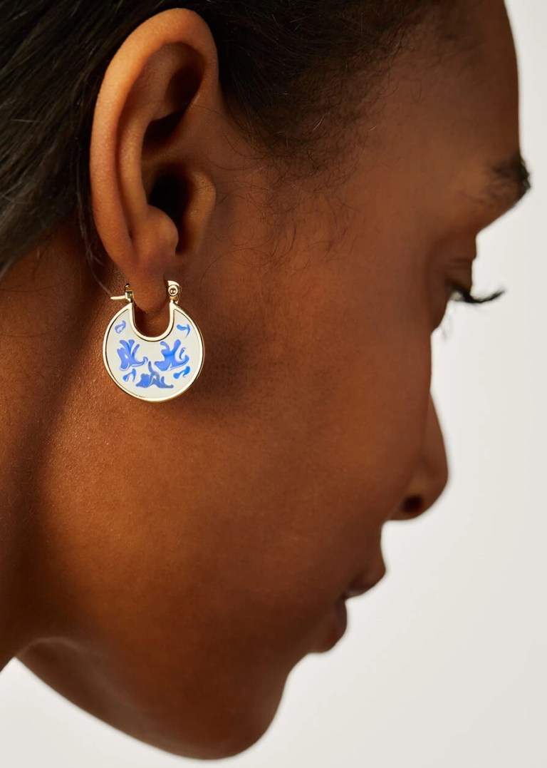 These delicate earrings by Ana Luisa are currently 15% off. Made with gold plated brass and enamel, they are have a light, pretty effect.