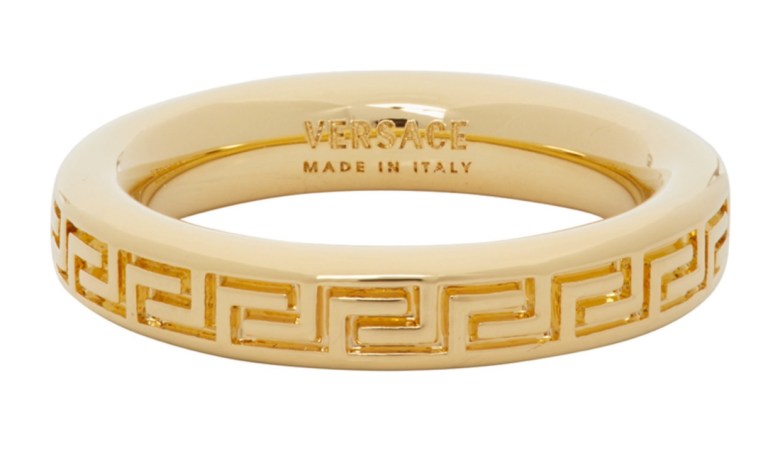 This ring is made of gold-tone brass, with that signature Greek key element around the band. This sells for USD$195.