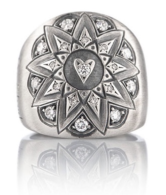 This ring by Otto Jewels is a great find for people with a spiritual bent, or just because you like the design. It’s made of sterling silver with .41 carats of diamonds.