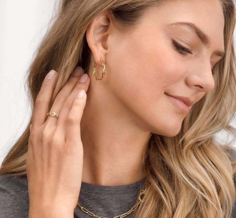 By Gorjana, the paperclip link gives them a fresh look. These are made of gold plated brass and sell for USD$55.