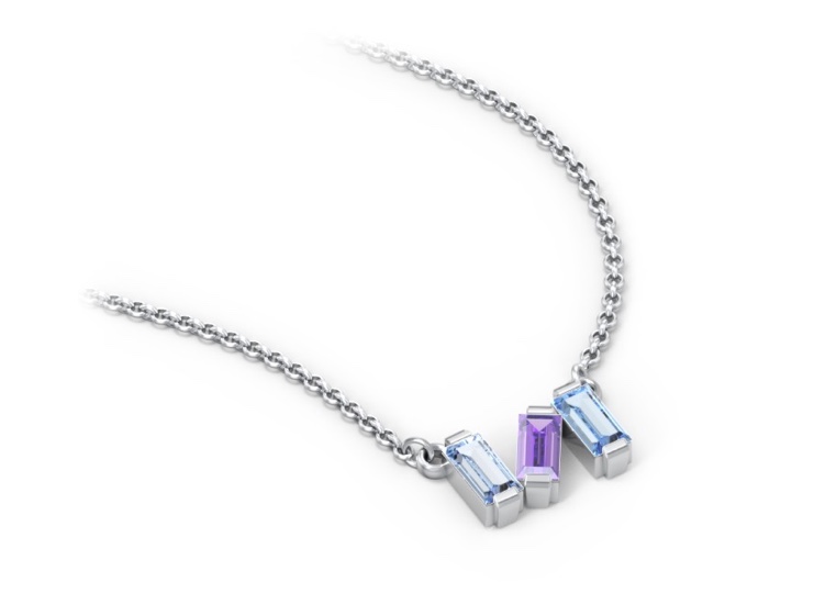 This baguette necklace by Jewlr is currently on sale for a base price of USD$151, using three simulated stones. The price rises slightly if you opt for genuine gemstones.