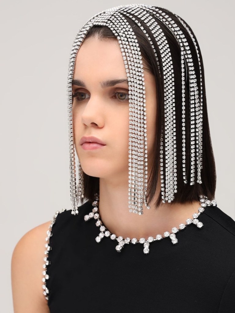 I love crystals and rhinestones more than the average person but even I did a double take when I saw this headpiece. (And frankly, the model looks like this is a dubious proposition…)