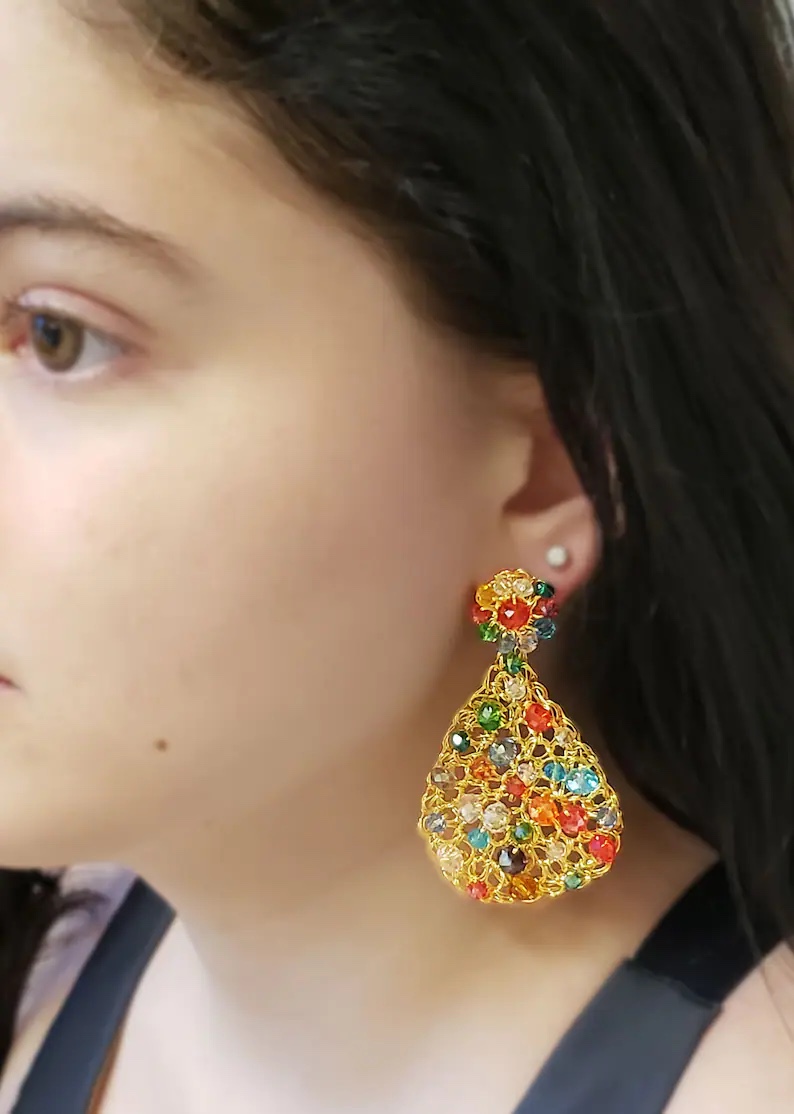 Lavish by TM 18k Gold Teardrop Crocheted Large Dangle Earrings