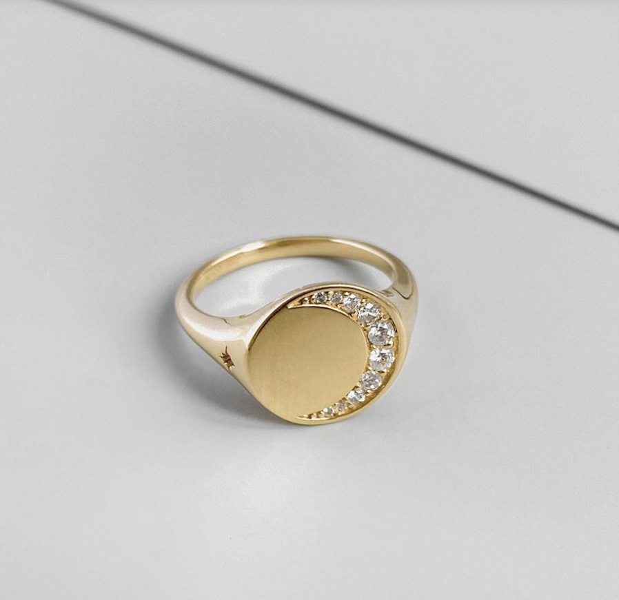 Wanderlust & Co. Moonlight Pave 14K Gold Vermeil Signet Ring