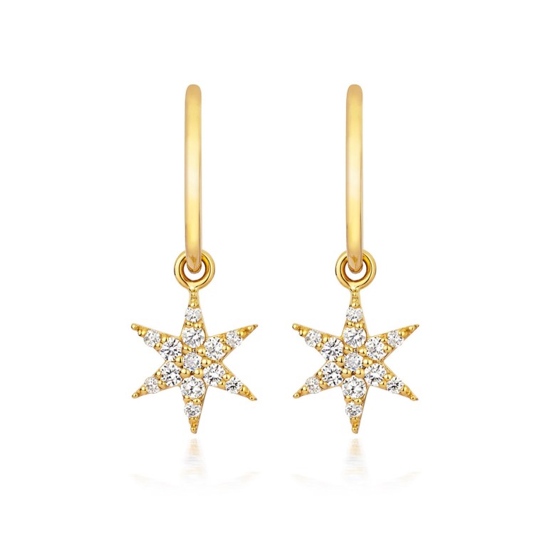 The site notes, “Zoe & Morgan’s Mini Anahata diamond hoops are hand crafted from solid 9ct yellow gold. Each six point star is set with 13 white diamonds totalling 0.135ct, SI1 clarity.”