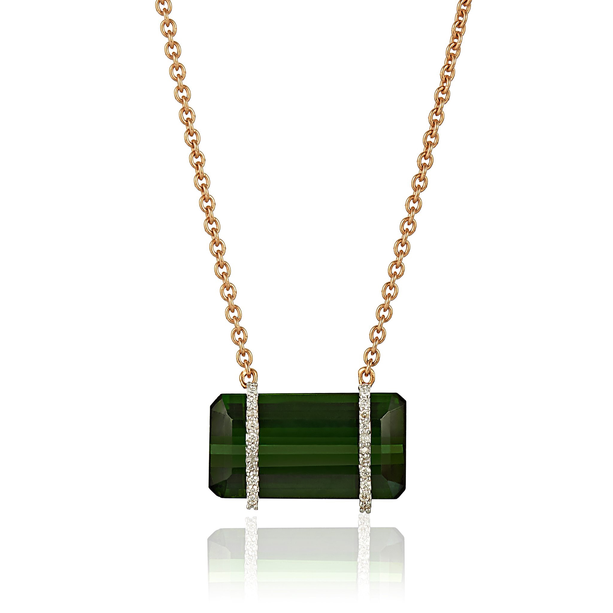 Kaizarin Green Tourmaline Necklace In Rose Gold
