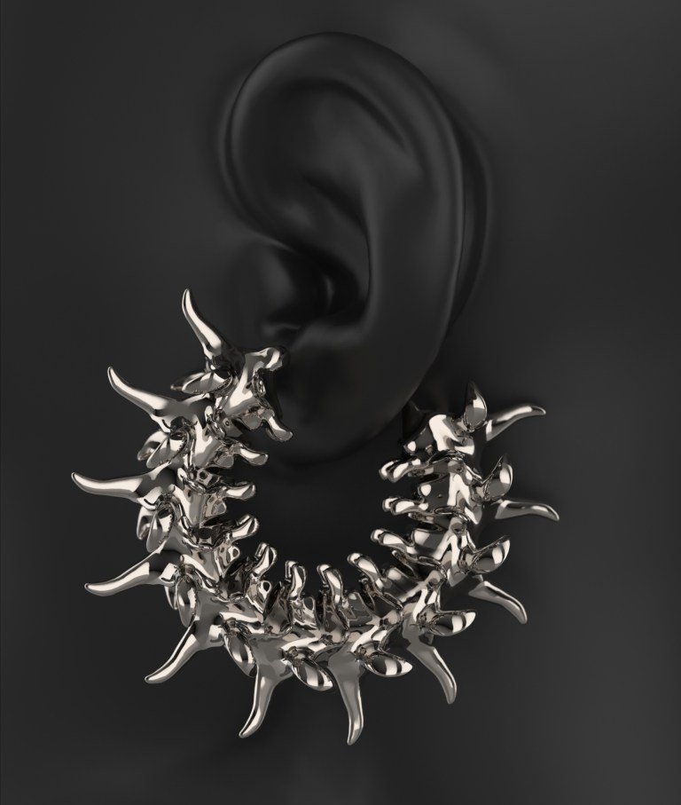 I love the tactile nature of this sterling silver earring by Hungarian artist Agoston Balazs. It is dubbed Spine No. 1, and it’s easy to see why.