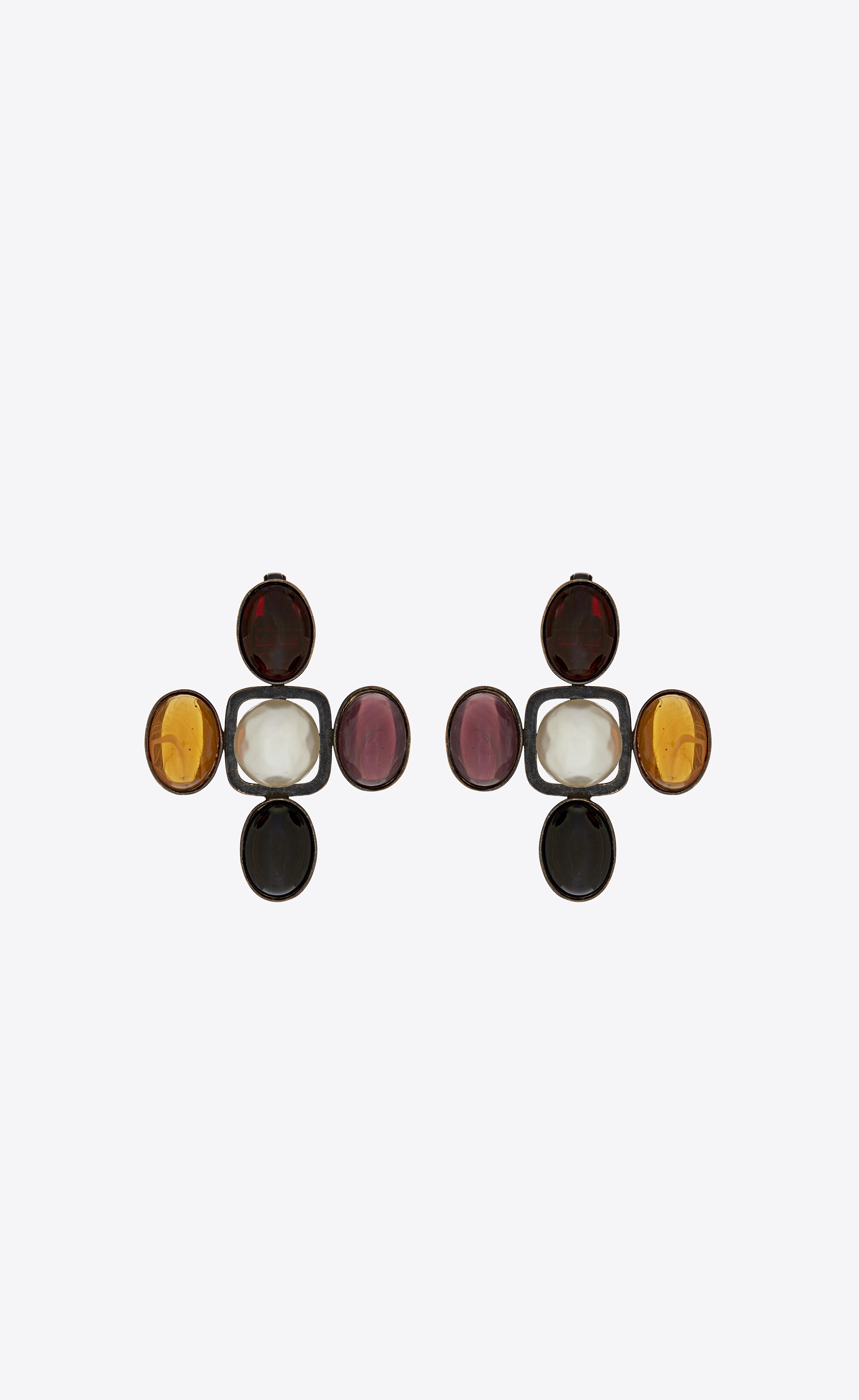 Saint Laurent Cross Earrings in Metal and Resin