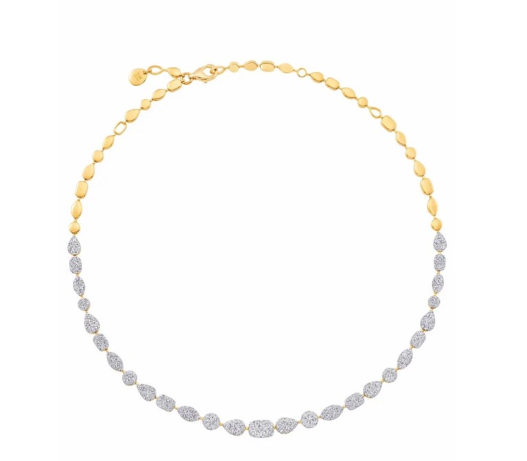 It is a gold and diamond choker, set with 4.81 carats of diamonds in 21.12 grams of 18 karat yellow gold. Yours (or your loved one’s) for USD$22,325.