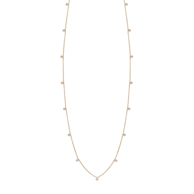 This necklace by Bychari is perfect if diamonds are your best friend. Offered in 14k yellow, white or rose gold, they explain, “Tiered just right this 15 bezeled diamond necklace is the ultimate in collarbone adornment. A compliment to any neckline this necklace featuring 14K Yellow, Rose or White gold is good on it’s own, but even more dazzling layered and now offered with 15 diamonds.”
