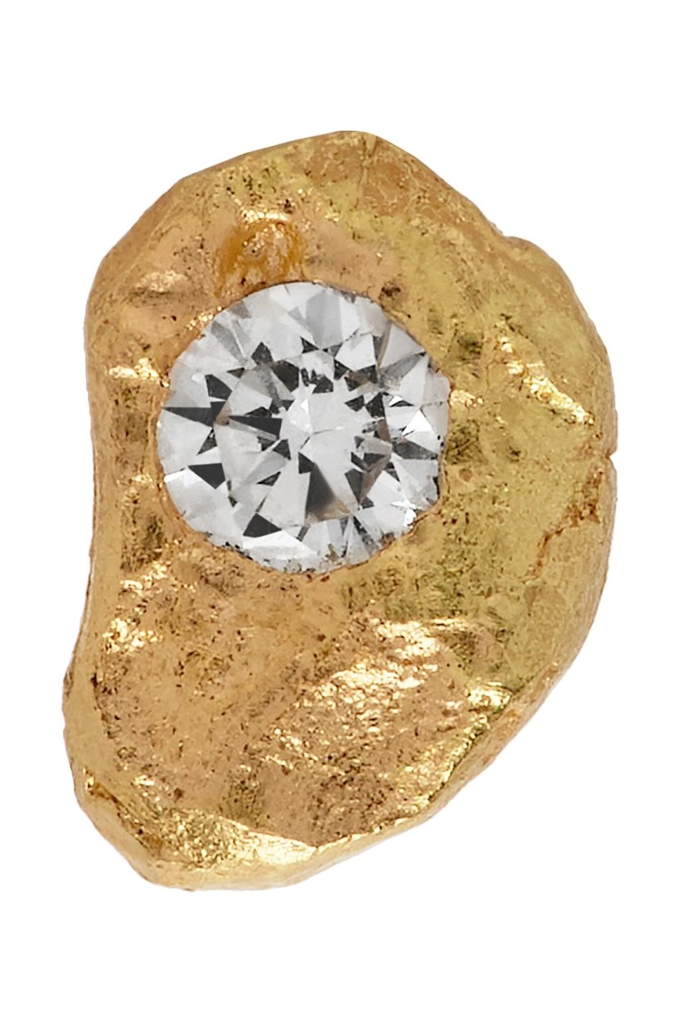 Perfect for the person who likes to mix and match their earrings…this piece by Elhanati Is described as, “Handcrafted single stud earring in 18k gold. Top Wesselton VVS diamond accent at face. Post-stud fastening. Approx. 0.25″ diameter.” The stone is approximately .02 carats.
