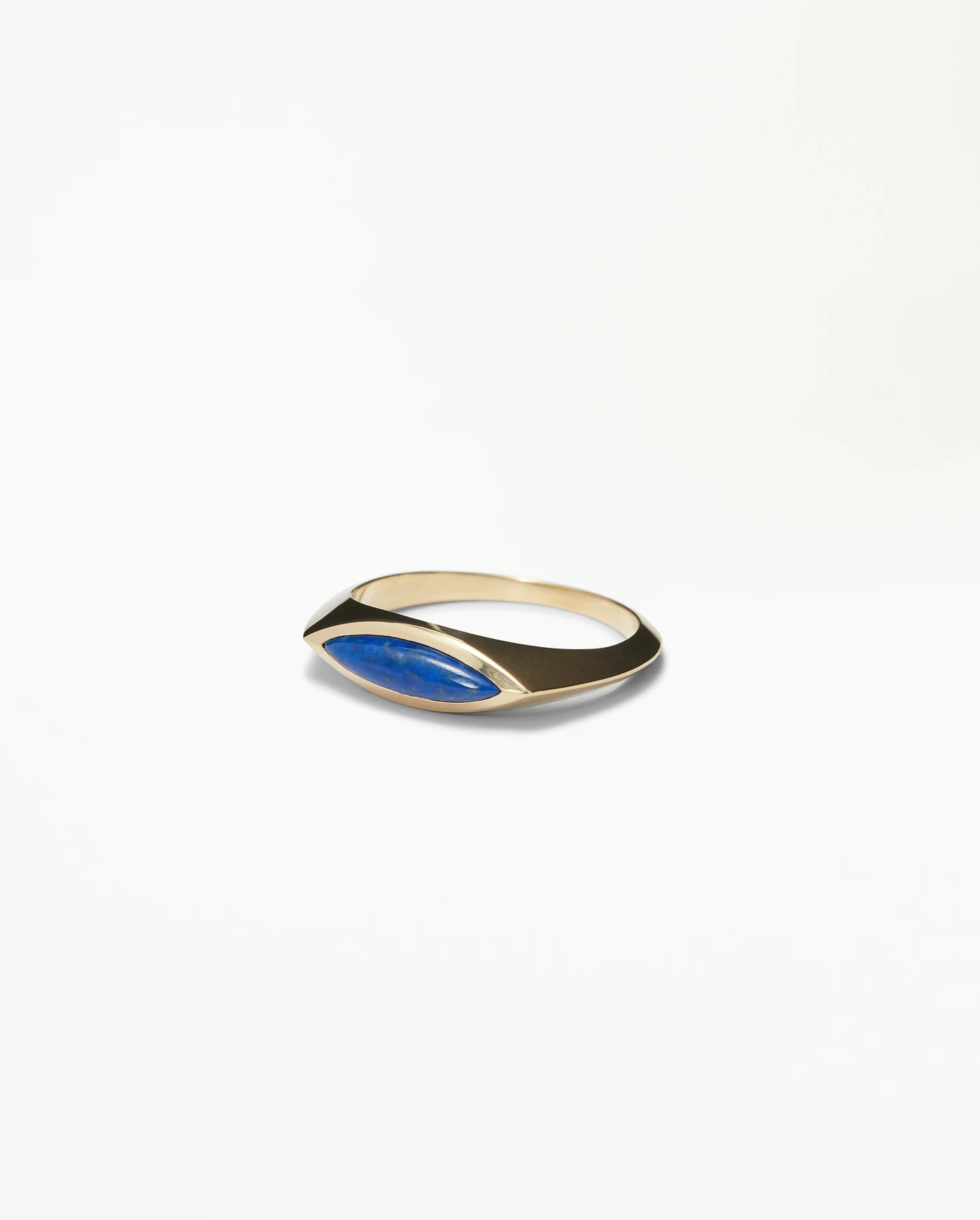 If you like your rings a bit daintier, Wwake has a good selection. Here, a ring set with a marquise lapis stone, set in 14k yellow recycled gold.