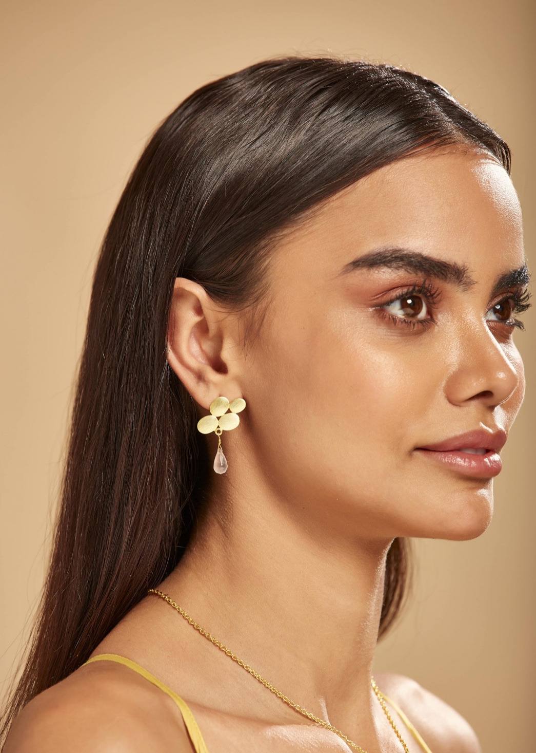 These are gold plated brass set with a rose quartz pear shaped drop. They sell for AUD$60.