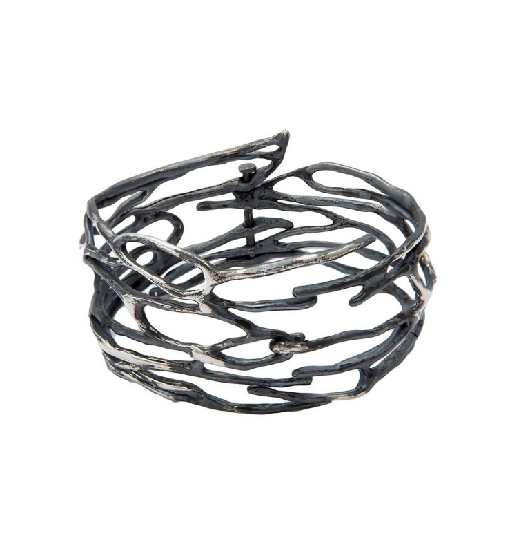 It’s made of oxidized sterling silver to give it the blackened appearance. This sells for USD$1,500.