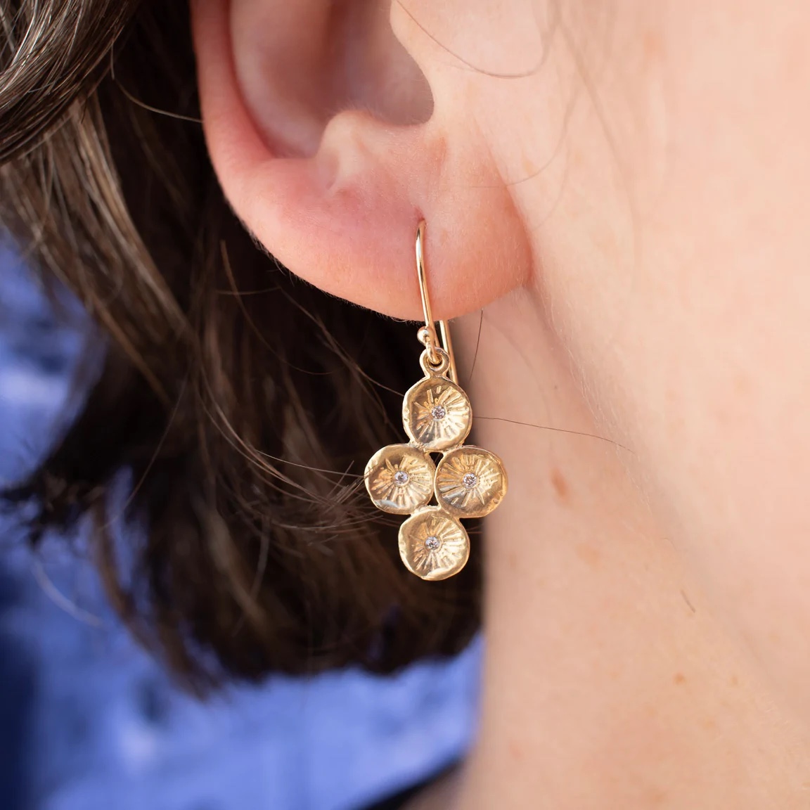 These earrings by Page Sargisson are available in yellow gold, as shown, and sterling silver, both set with diamonds.