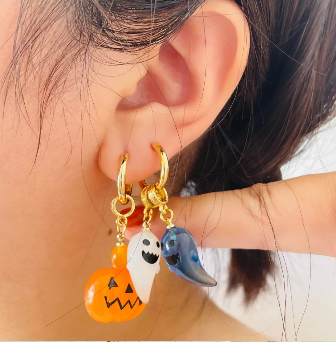 If you’re already into pumpkin spice lattes then it’s not too early to start thinking of your Halloween accessories. These earrings by Ninemoo bring the (cute) spooky with three whimsical charms.