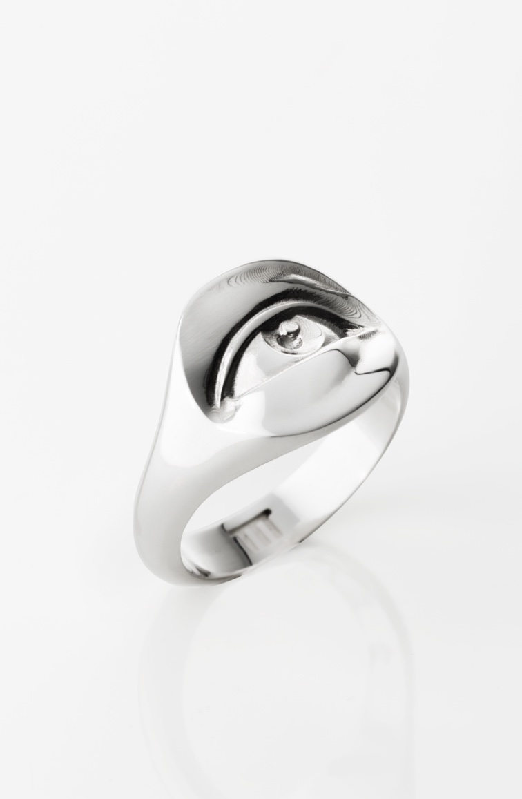 This is the description of the Melancholia Narcissus ring, which features the small sculpture of an eye.