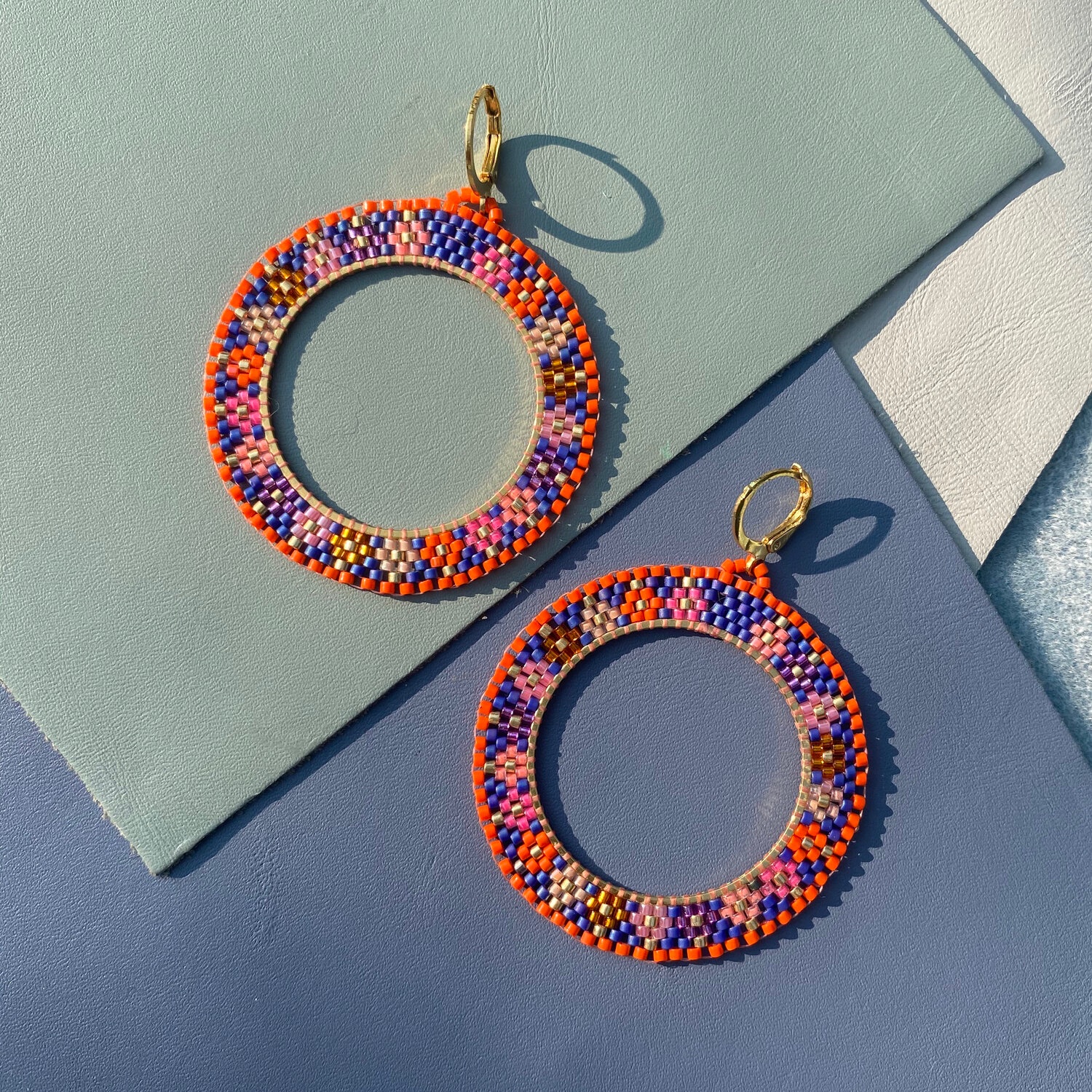 And these earrings are a definite statement piece! Hand beaded by Sadie with tiny glass seed beads and 24 carat gold plated hoops. The beads are so delicate, these earrings are lightweight, too!