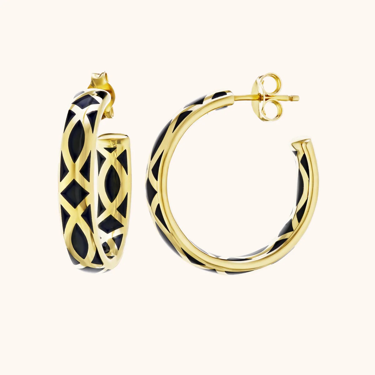 These earrings by Ashita New York are an elegant take on classic hoops. They are also priced well for 14k gold, accented with enamel.