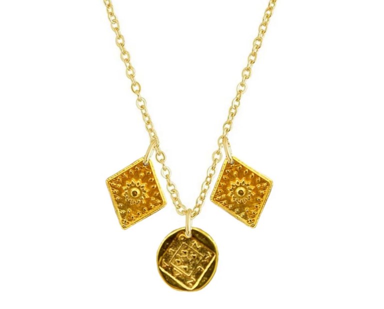 Priced at USD$85, it’s made of gold plated brass strung on a gold plated sterling silver (vermeil) chain.