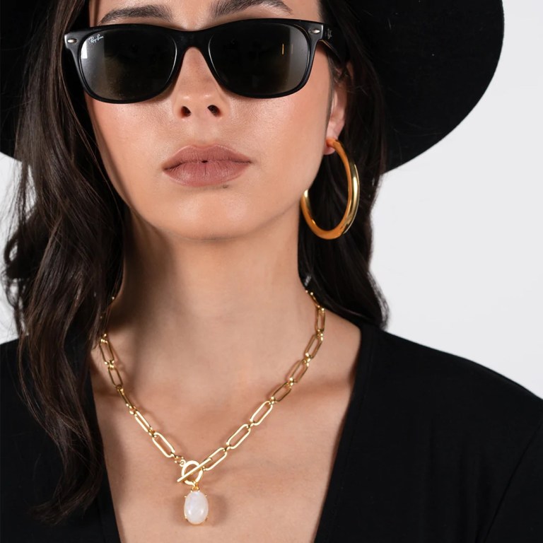 This chunky gold tone necklace by Saint Moran is a bold addition to your fall wardrobe.
