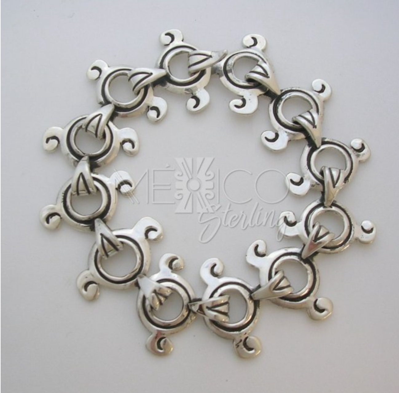 William Spratling pieces have always commanded a premium price. If you like his aesthetic but not the price tags, California-based Mexico Sterling offers this bracelet featuring one of his designs.
