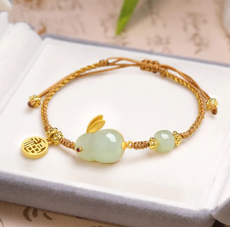 Happy lunar new year to all who celebrate this weekend! This adorable jade bracelet features this year’s zodiac animal, the rabbit.