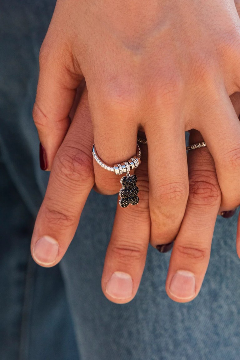 By APM Monaco, it’s made with sterling silver set with cubic zirconia. There are other colours available, including clear and violet.