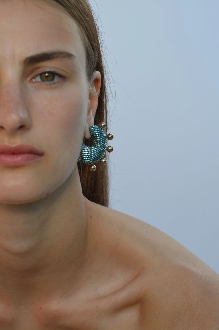 These iridescent seed bead earrings by Susana Vega are a fun take on an oversized hoop.